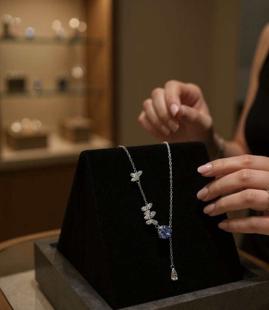 قلادة رائعة من الفضة عيار ٩٢٥ والموسانيت مزين بفراشات ناعمة وانيقة تزن ٢.٢٣قيراط